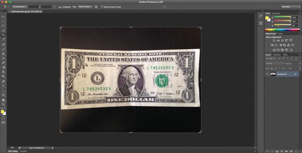 Tuy vậy, tính năng này vẫn không thật sự hiệu quả với các trường hợp như ảnh tờ tiền có chất lượng thấp, hoặc khi người dùng cố tình chụp lại bằng máy ảnh khác. Trong ví dụ dưới đây, Photoshop vẫn có thể chỉnh sửa bức ảnh hai tờ 1 USD và 2 USD bị chụp hơi nghiêng.