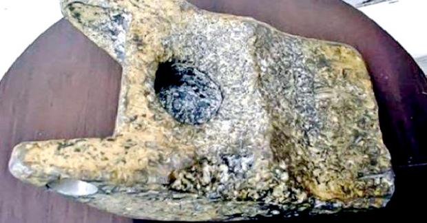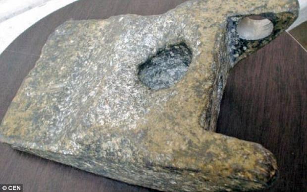 Chúng trông rất cổ và kỳ lạ, giới khảo cổ đã xác nhận 2 trong số đó là hóa thạch. Vật thể thứ 3 là một miếng kim loại do con người chế tạo, nó rất nhẹ. Một số người cho rằng, đây có thể là bộ phận của một cái rìu.