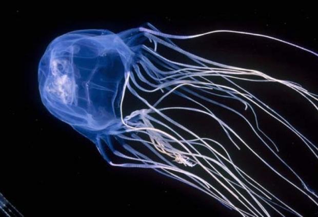 2. Sứa ống - ở các vùng biển châu Á – Thái Bình Dương có những xúc tu chứa chất độc có thể giết người trong vài phút. Dù gây chết người, nhưng loại sứa này vô hại với rùa biển và thường bị rùa ăn thịt.