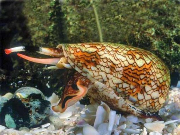 3. Ốc nón – sống ở các vùng biển nhiệt đới và cận nhiệt đới sẽ tấn công khi bị quấy rầy bằng các xúc tu chứa chất độc, khiến con mồi bị sốc kiểu 'hạ đường huyết' chết trong vòng 2 giờ.