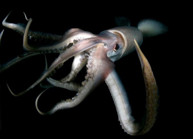 9. Mực Humboldt – sống ở các vùng biển của hải lưu Humboldt đông Thái Bình Dương, là một trong những loài mực lớn nhất, có thể dài tới 1,5m, nổi tiếng vì sự hung hăng, hay tấn công theo đàn, có khi lên tới cả nghìn con. Theo ngư dân thì loài mực này có thể gây chết người trong 10 giây, vì thế nên ở Mexico nó được gọi là 'quỷ đỏ'.