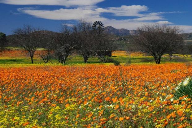 Namaqualand, Nam Phi/ Nambia: Nambia hầu hết quanh năm khô hạn nhưng sa mạc này lại sở hữu những dãy núi tím hồng tuyệt đẹp. Khi mùa xuân đến, Nambia thực sự là một thiên đường với những đốm hoa nhiều màu sắc khác nhau nở rộ dọc theo hàng trăm dặm trong những thung lũng. (Ảnh: Landscapetours.co.za).