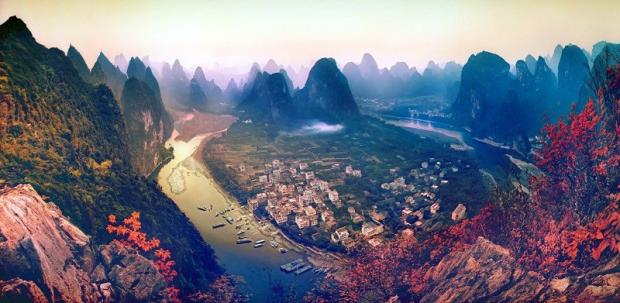 Núi đá vôi ở miền Nam Trung Quốc. Một trong những cảnh quan kỳ diệu và khác biệt nhất trên thế giới là dãy núi đá vôi gần Quế Lâm. Không bút mực nào có thể miêu tả được cảnh đẹp này. (Ảnh: Odette Baudouin).