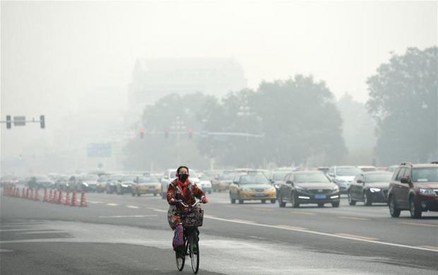 Người dân Trung Quốc đeo khẩu trang để tránh tác hại của khói mù ô nhiễm tại thủ đô Bắc Kinh, Trung Quốc ngày 14/10.