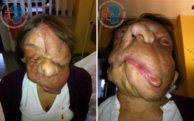 Khối u chèn lên mặt khiến Joanna không thể cử động được miệng.