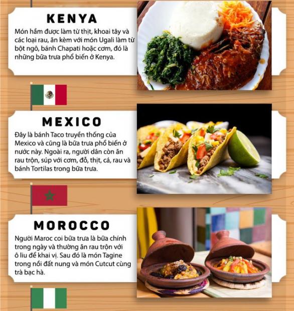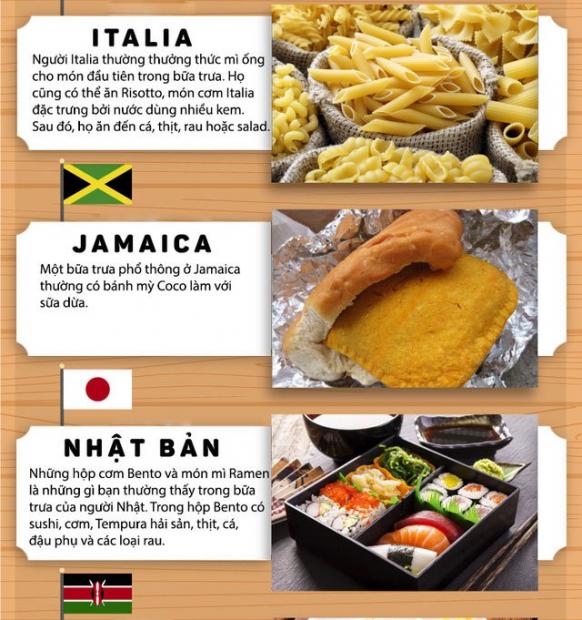 Người dân ở các quốc gia trên thế giới đang ăn gì vào bữa trưa của họ?