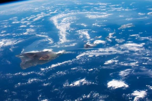 Núi lửa đảo Hawaii bất ngờ thức giấc giữa một đại dương bao la rộng lớn nhìn từ quỹ đạo Trái đất.