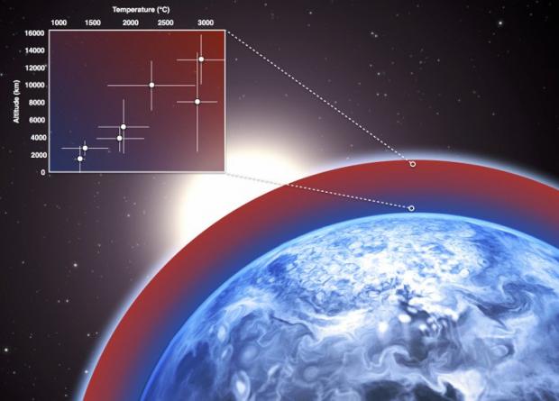 Do tín hiệu phát ra từ nhiều độ cao khác nhau, nhóm nghiên cứu có thể đo cả khác biệt nhiệt độ dọc theo bầu khí quyển. Ở gần mặt đất, nhiệt độ của hành tinh giảm từ 3.000 xuống 1.700 độ C.