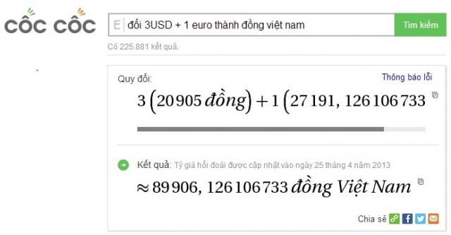 Một điểm khác biệt quan trọng của dịch vụ là khả năng am hiểu tiếng Việt, người dùng có thể gõ cả những truy vấn như 'đổi 4USD + 3 euro thành đồng việt nam' hay '10 km bằng bao nhiêu mét'.