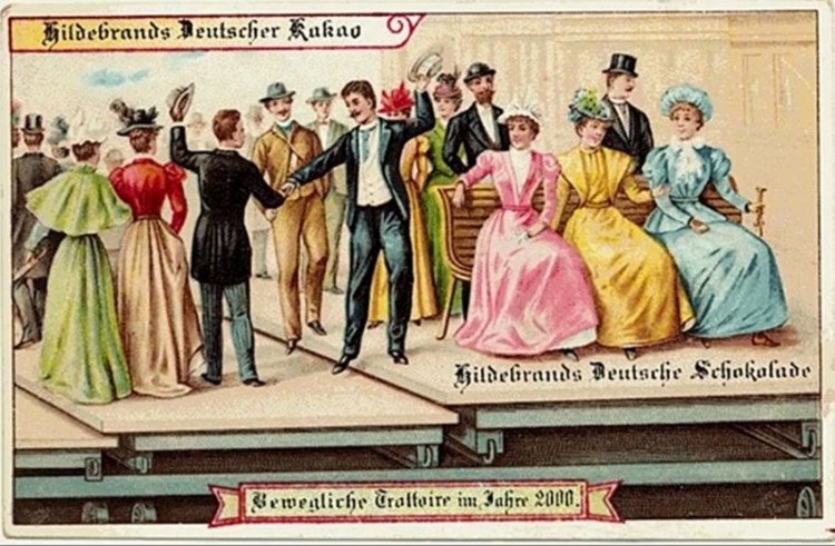 Xuất hiện ở các sân bay, những băng chuyền này gần giống những gì được mô tả trong tranh. Nhờ nó mà người ta có thể di chuyển nhanh hơn đi bộ. Tuy nhiên, nó không được ứng dụng ở qui mô thành phố như người ta từng tưởng tượng.