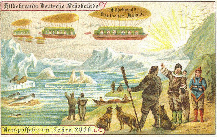 Ngay vào thời điểm các bưu thiếp của Pháp dự đoán những điều sẽ thành hiện thực vào năm 2000, một công ty sản xuất chocolate của Đức đã tham gia vào việc dự đoán tương lai này. Trong một thời gian ngắn, công ty Theodore Hildebrand và Con trai đã kèm các tấm thiệp đầy màu sắc vào bao bì sản phẩm, trong đó in những gì họ tin là sẽ xuất hiện vào năm 2000. Tổng cộng có 12 loại thiệp đã được in, tiên đoán về những thứ sẽ thành hiện thực vào thế kỉ 21.