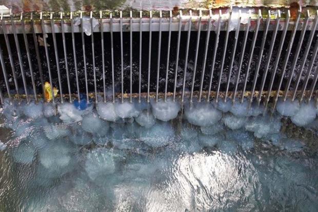 Sứa mắc kẹt vào van dẫn nước làm mát của một nhà máy điện. (Ảnh: AFP).