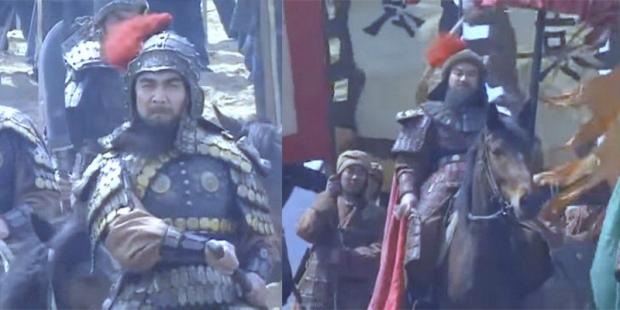 Đổng Trác và con rể Lý Nho trên thành nhìn xuống trận chiến chuẩn bị xảy ra.