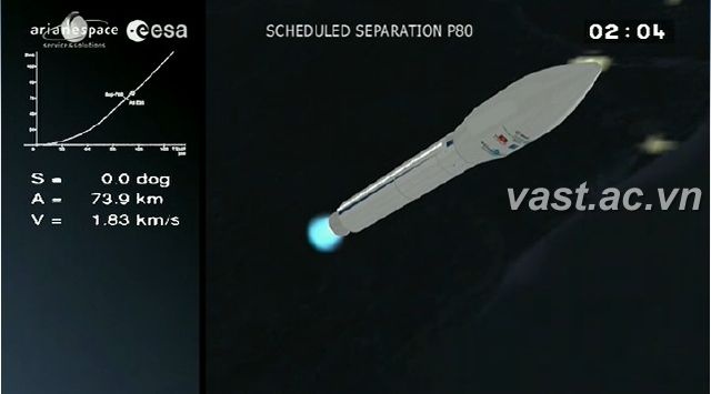 Đúng theo kế hoạch đã định,vào 9 giờ 06 phút sáng ngày 07/5/2013 (giờ Hà Nội), Vệ tinh quan sát trái đất đầu tiên của Việt Nam VNREDSat-1 đã được phóng vào vũ trụ bằng tên lửa đẩy VEGAtừ bãi phóng Kourou, Guyana thuộc Pháp. Công ty ArianeSpace thực hiện việc phóng VNREDSat-1 cùng với hai vệ tinh khác là vệ tinh PROBA V của Cơ quan Vũ trụ Châu Âu – ESA và vệ tinh ESTCube-1 của Estonia. Các hình ảnh tường thuật Chương trình Phóng vệ tinh từ Kourou được truyền trực tiếp về Lễ chào mừng tại Hà Nội.