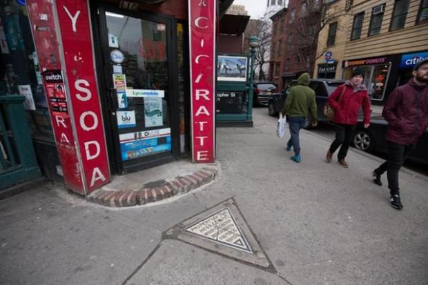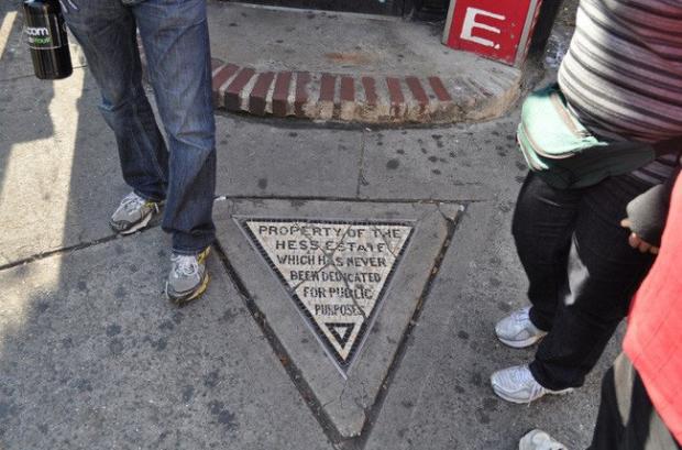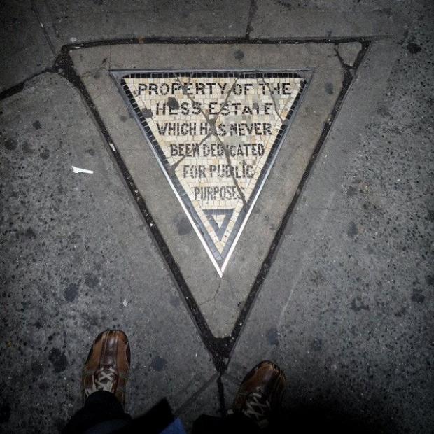 Nằm ở góc phía Tây Nam của phố Christopher và đại lộ thứ 7, ngay trước cửa hàng Village Cigars là một miếng đất nhỏ hình tam giác có khắc dòng chữ 'Miếng đất này là tài sản của Hess và nó chưa bao giờ được quyên tặng cho mục đích công cộng'.