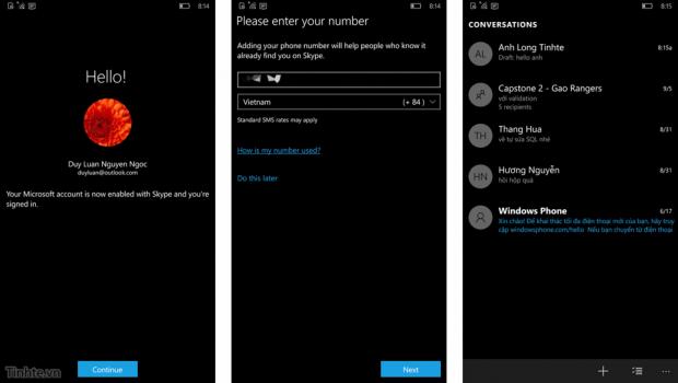 Mới chạy lên lần đầu sẽ được yêu cầu đăng nhập tài khoản Skype, có thể nhập thêm số điện thoại để bạn bè dễ tìm hơn (như kiểu Viber, Zalo, WhatsApp).