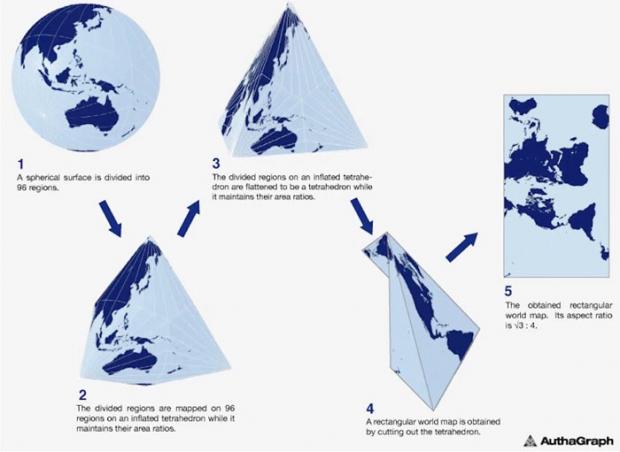Kiến trúc sư Nhật Bản Hajime Narukawa tuyên bố đã giải quyết một vấn đề từ nhiều thế kỷ - làm thế nào để vẽ một hình cầu dẹt về Trái Đất trên một mặt phẳng.