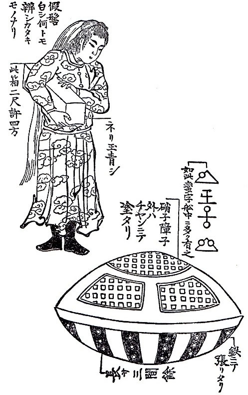 Tranh miêu tả phi thuyền Utsuro-bune bởi Kyokutei Bakin (1825). (Ảnh: Wikimedia).