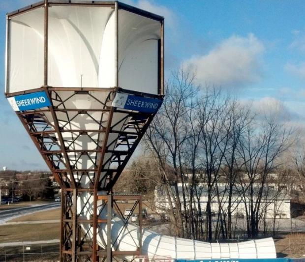 Tuabin gió sáng tạo này có khả năng sản xuất năng lượng nhiều hơn 600 lần so với cối xay gió truyền thống. Tuabin SheerWind Invelox là một máy phát điện năng lượng gió dạng hình phễu, khai thác gió ở mặt đất và làm tăng tốc độ của gió bên trong nhờ cấu trúc hình phễu thu nhỏ và nhiều nút thắt đột ngột. Hệ thống có thể hoạt động ngay cả trong điều kiện gió thấp và do không có cánh bên ngoài quay với tốc độ cao nên không gây nguy hiểm cho động vật hoang dã tại địa phương. Thiết bị này cũng ít tốn kém chi phí xây dựng hơn so với những tuabin gió truyền thống.