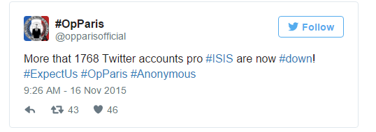 Hàng triệu thông điệp đã được gửi để cầu mong sự bình an cho các nạn nhân xấu số trong sự kiện này. Trong khi tất cả cơ quan an ninh Châu Âu đang nỗ lực điều tra, bắt giữ những nghi phạm liên quan, nhóm hacker nổi tiếng Anonymous 'thề rằng họ sẽ săn lùng khủng bố IS trong chiến dịch lớn nhất lịch sử'.