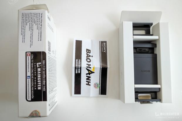 Bên trong chúng ta sẽ được tặng kèm phiếu bảo hành, khá đáng tiếc là Sony không trang bị bất cứ sợi dây USB nào mà buộc người dùng phải sử dụng dây mà họ có sẵn