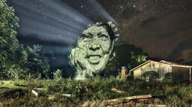 Bằng cách chiếu hình ảnh khuôn mặt của người Surui lên những khu rừng bị tàn phá, nghệ sĩ người Pháp hy vọng cộng đồng quốc tế sẽ quan tâm tới tình cảnh của họ.