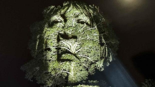 Nghệ sĩ Echaroux chiếu hình ảnh khuôn mặt của người Surui lên cây với hy vọng ngăn chặn nạn phá rừng.