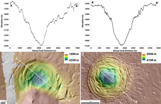 Cấu trúc hình phễu trên Sao Hỏa này gần giống với những lòng chảo băng cổ đại ta có trên Trái Đất, những lòng chảo được tạo nên khi núi lửa phun trào dưới nền băng dày tại Iceland và Greenland. Nếu như quá trình phun trào ấy đã diễn ra tương tự trên Sao Hỏa, nó có thể để lại một môi trường ấm nóng và tràn đầy dinh dưỡng.