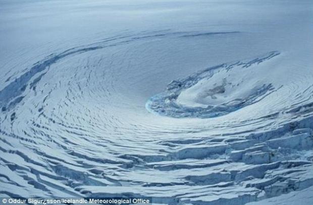 Các nhà khoa học ước lượng rằng số lượng magma phải cực lớn để có thể làm tan băng và tạo ra hố lớn như thế, con số ước tính khoảng 100.000 mét khối magma.