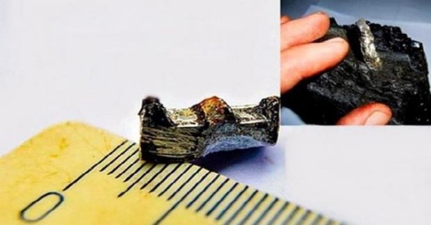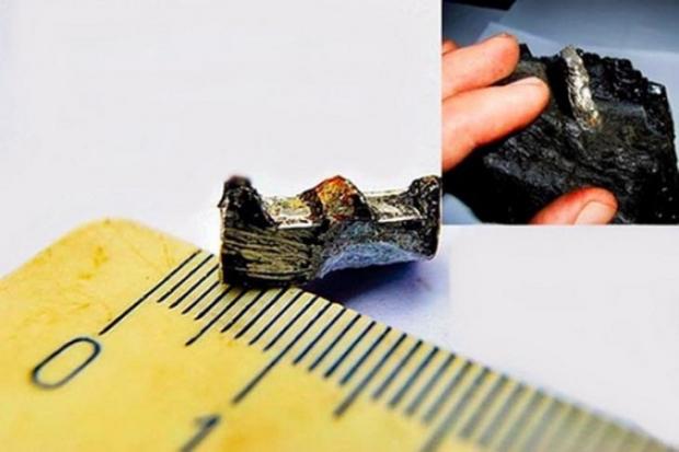 Khi các nhà địa chất đập vỡ cục than chứa vật thể kim loại và xử lý bằng chất hóa học đặc biệt, vật thể này đột nhiên trở nên nhẹ, mềm. Dài không quá 7 cm, thành phần cấu tạo vật thể này bao gồm 98% nhôm (Al) và 2% magiê (Mg).
