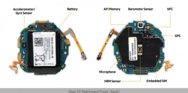 Mời bạn xem qua một số hình ảnh mổ bụng của chiếc đồng hồ thông minh Samsung Gear S3, bao gồm nhiều bộ phận khác nhau.