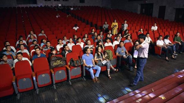 Đạo diễn chương trình làm việc cùng các MC và thí sinh.