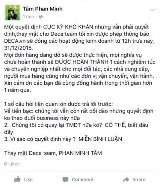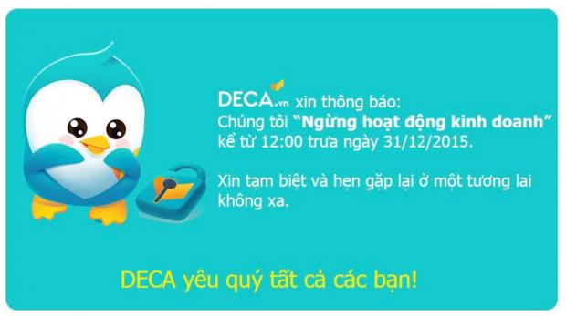 Deca.vn đã là trang web TMĐT thứ 2 phải đóng cửa sau Beyeu.com tại Việt Nam trong năm 2015 vừa qua. Trang Beyeu.com đã đóng cửa vào tháng 11 với một lời nhắn nhủ gây sốc cho cả cộng đồng TMĐT của Việt Nam: