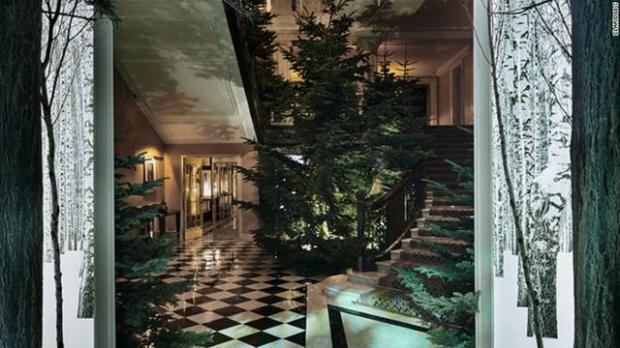 Trên thực tế, cây thông Noel này cũng hợp với khung cảnh xung quanh tại sảnh khách sạn, với những hộp đèn chiếu hình ảnh màu đen trắng của rừng cây bạch dương lên tường của sảnh khách sạn, những cây trang trí khác đặc dọc sảnh... và khi đó, cây thông Noel nguyên bản do Jony Ive đặt vào sẽ khiến du khách có cảm giác như đang đi bộ qua một khu rừng nằm ngay trong sảnh khách sạn.