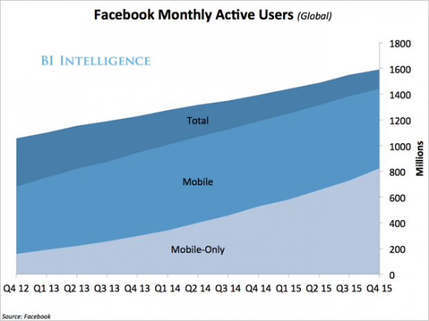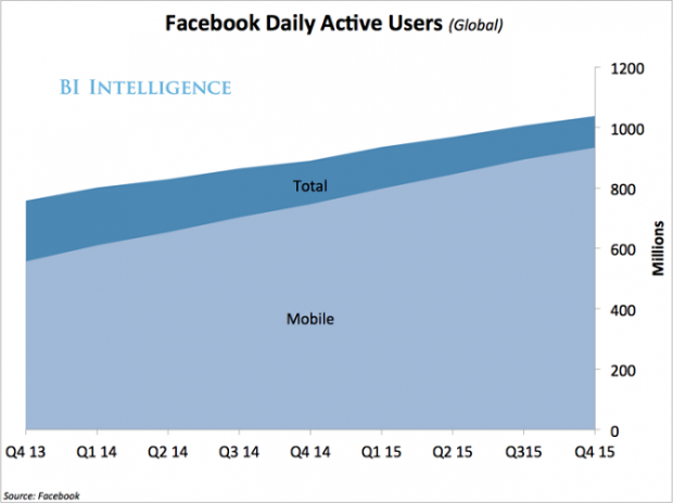 Thực tế cho thấy, lượng người dùng Facebook qua di động đang ngày càng gia tăng bởi sự tiện dụng của nó. Lượng người dùng thường xuyên hàng tháng đã chạm mốc 1,44 tỷ người, tăng 21% so với năm ngoái và lượng người dùng thường xuyên hàng ngày là 934 triệu người, tăng 25% so với Q4/2014.