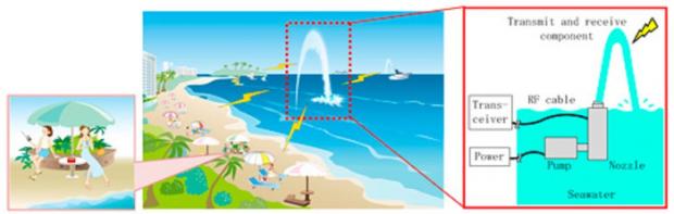Nhưng công ty cũng có những hy vọng lớn hơn cho công nghệ này. Họ chỉ ra rằng những tín hiệu ở tần số rất thấp này – loại tín hiệu được sử dụng để các tầu chiến và tầu ngầm truyền tin cho nhau ở khoảng cách rất lớn trên biển – đòi hỏi những chiếc ăng ten vô cùng lớn tương ứng, với chiều cao lên đến hàng chục mét. Trong trường hợp rất khó hoặc không thể có những thiết bị như vậy, Mitsubishi cho rằng một tia nước biển nhỏ có thể sử dụng thay thế. Chúng ta sẽ phải đợi để xem liệu đó có phải là một giấc mơ viển vông.