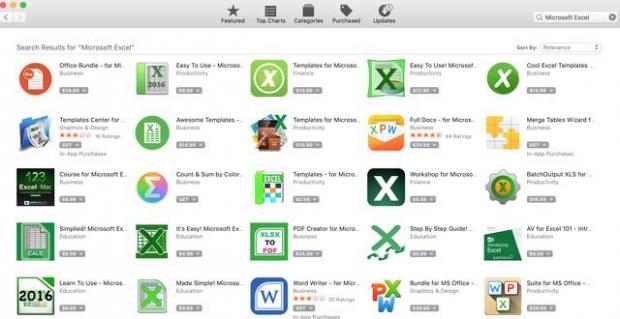 Trên chợ ứng dụng App Store cho máy Mac, cái tên Microsoft Excel là một ví dụ hoàn hảo, vì có một số lớn ứng dụng được liệt kê khiến người dùng tưởng là 'xịn', nhưng thay vào đó, chỉ là các add-on yêu cầu cài đặt Microsoft Excel.