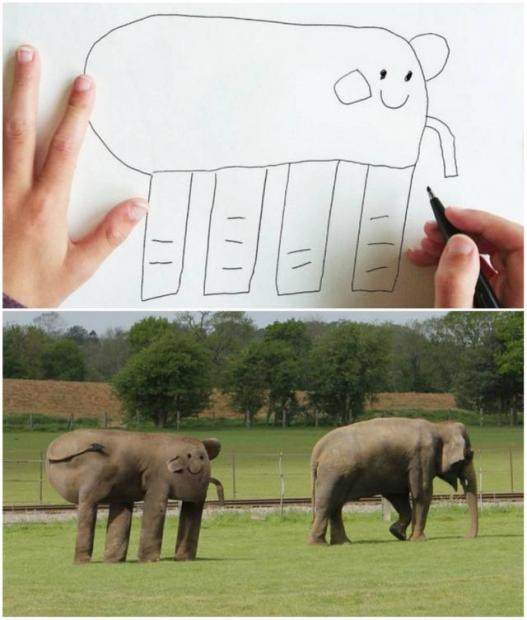 Dưới đây là một vài hình ảnh được cha của Dom tạo ra từ những bức tranh do cậu bé 6 tuổi này vẽ nên: