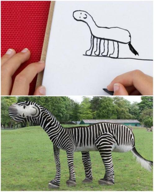 Dưới đây là một vài hình ảnh được cha của Dom tạo ra từ những bức tranh do cậu bé 6 tuổi này vẽ nên: