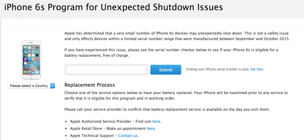 Cụ thể, người dùng có thể truy cập vào trang web https://www.apple.com/support/iphone6s-unexpectedshutdown/ và nhập vào IMEI của máy để kiểm tra xem có đủ điều kiện để thay thế pin miễn phí.