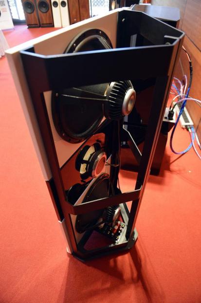 Một trong những chiếc loa độc đáo tại triển lãm là cặp loa của Voxativ cho cảm giác như loa siêu mỏng với nội thất 'lộ thiên'.