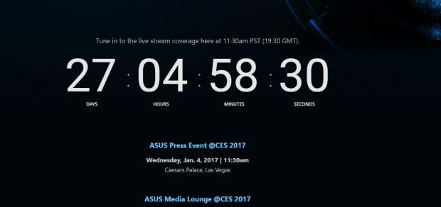 Ngoài thư mời trên thì trên trang web của Asus, một đồng hồ đếm ngược cho sự kiện này cũng được hãng đặt giữa và như bạn thấy, chúng ta sẽ đợi thêm 27 ngày nữa để đến với sự kiện và chắc chắc tại CES 2017 không chỉ có sản phẩm của Asus mà còn rất nhiều hãng khác, cùng chờ nhé.