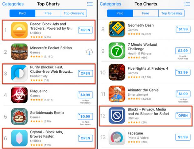 Công ty phân tích thị trường ứng dụng App Annie khẳng định với BBC rằng, mặc dù các ứng dụng adblock đã thu hút được sự chú ý mạnh mẽ sau khi Apple công bố hỗ trợ tính năng này trên Safari iOS vào tháng 9 vừa qua, đến nay gần như tất cả các ứng dụng adblock đều đã tuột khỏi top 100 ứng dụng trên App Store và đạt thứ hạng rất thấp.