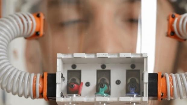 Đặc biệt trên lớp mặt lạ có gắn hai cánh quạt nhỏ có nhiệm vụ thổi qua các ống chứa mùi hương để đưa tới mũi người thử nghiệm.