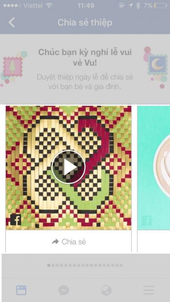 Để sử dụng tính năng mới này, hãy mở ứng dụng Facebook lên, phần tạo thiệp sẽ được Facebook gợi ý hàng đầu, bạn chỉ cần nhấp vào Chia sẻ thiệp.