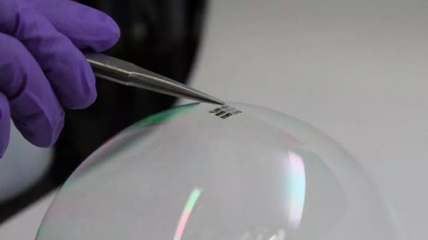Các nhà khoa học Mỹ phát minh loại pin quang điện siêu mỏng và siêu nhẹ, có thể đặt trên đỉnh những bong bóng xà phòng mà không làm vỡ chúng.