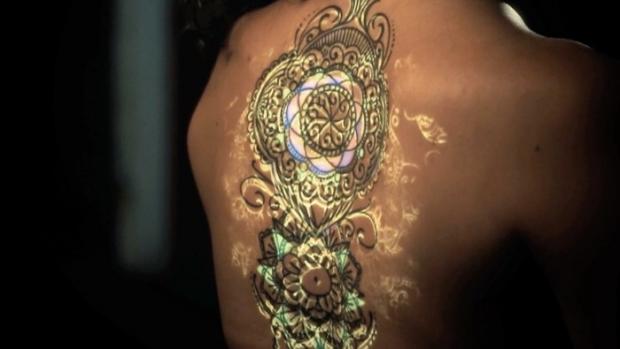 Nhóm nghệ sĩ Bồ Đào Nha sử dụng kỹ thuật xăm mới kết hợp cách xăm truyền thống và công nghệ chiếu bản đồ tạo ra các hình xăm chuyển động trên cơ thể người.