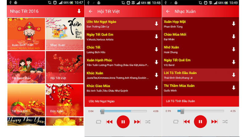 Tết đến, hãy cùng hòa nhịp và thưởng thức album “Nhạc Xuân Mới Nhất 2017” cho tết Bính Thân. Ứng dụng Nghe Nhạc Tết 2017 sẽ tổng hợp cho bạn đầy đủ các album nhạc tết, nhạc trẻ, nhạc vàng, nhạc trữ tình về tết cho các bạn mà không cần dùng nhiều ứng dụng hay tải từ nhiều nguồn khác nhau.