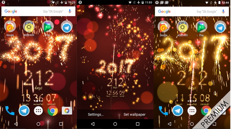 New Year Countdown to 2017 là một trong các ứng dụng hay nhất dành cho năm mới nhận được rất nhiều lượt đánh giá tốt trên cửa hàng ứng dụng Play Store. Đây là một tiện ích sở hữu các hình nền động với các bối cảnh pháo hoa rất bắt mắt. Tất cả đều được thiết kế dưới đồ họa 3D mang đến cho người dùng một không khi hồi hộp chờ đợi và vui từng bừng khi năm mới đến và bạn hoàn toàn có thể cảm nhận được điều này mỗi lần mở 'dế'. Tuy nhiên, điểm nhấn tạo nên sự ấn tượng của New Year Countdown to 2017 lại nằm ở tính năng đếm ngược thời gian tới đêm Năm mới đi kèm khả năng tùy biến mạnh mẽ. Bạn sẽ được tận hưởng cảm giác đếm từng ngày, từng giờ, thậm chí là từng phút, từng giây tới đêm Giao thừa và sẽ thế nào khi kim đồng hồ chỉ 00:00 của ngày 01.01 nhỉ? New Year Countdown to 2017 sẽ dành cho bạn những bất ngờ vô cùng thú vị.