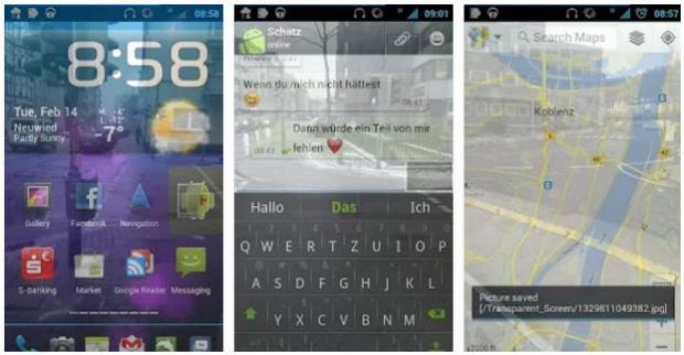 Ứng dụng Transparent Screen Launcher làm cho màn hình điện thoại di động của bạn trở nên trong suốt bằng cách sử dụng máy ảnh. Khi đó, hình nền chính trên màn hình sẽ tự động thay đổi theo như những gì mà camera sau trên máy ảnh của bạn chụp được, khá thú vị. Với ứng dụng này, bạn có thể tha hồ sử dụng điện thoại và duyệt web khi đi trên đường mà không sợ phải va chạm vào người phía trước trong lúc đang tập trung.